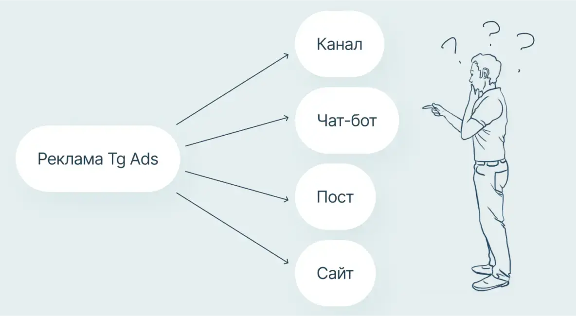 В Telegram Ads у бизнеса есть несколько вариантов, куда вести пользователей: