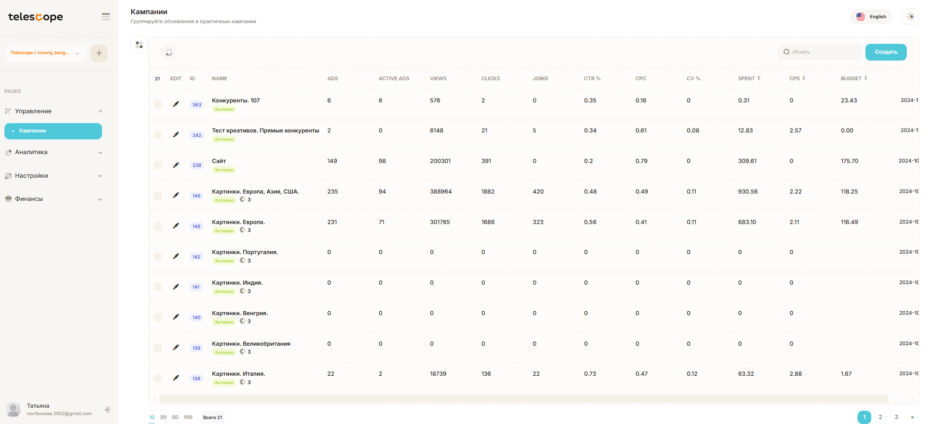 Для достижения успеха в кампании недостаточно просто распределять объявления по каналам и устанавливать CPM. Например, чтобы привлечь подписчиков в канал туристической компании, необходимо охватить различные сегменты аудитории. Кому-то может понравиться реклама туров в Италию, в то время как другого заинтересует путешествие в Китай. Возможно, стоит разработать универсальное сообщение, которое будет актуальным для всех, но более таргетированные формулировки приведут к лучшим результатам, увеличивая количество подписок и клиентов. В инструменте telescope есть встроенный SPY-сервис, который помогает быстрее генерировать привлекательный креатив, показывая объявления конкурентов.